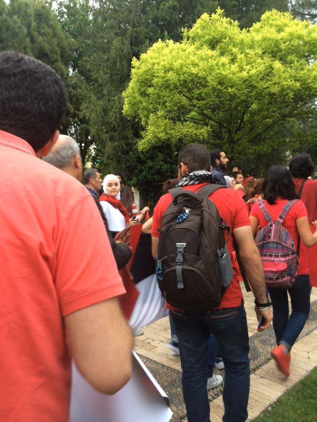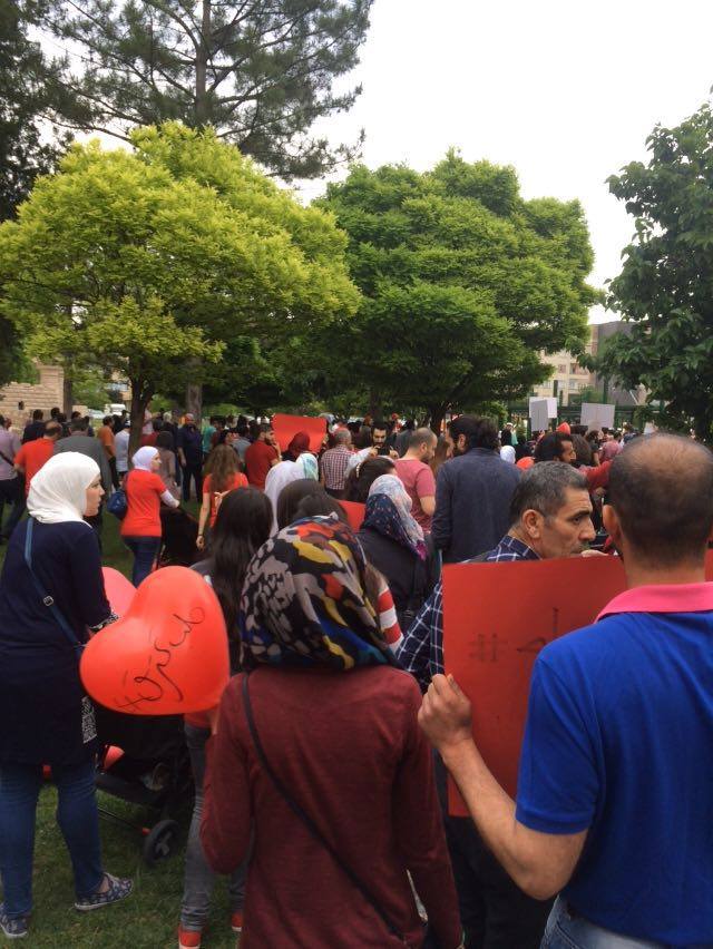 وجاء ذلك في أجواء صامتة نظراً لصعوبة تأمين التراخيص للمظاهرات والفعاليات العلنية، ورفع المتظاهرون لافتات نددت بما يحصل في حلب من قتل وتدمير على يد نظام الأسد والميليشيات الإيرانية والأفغانية.