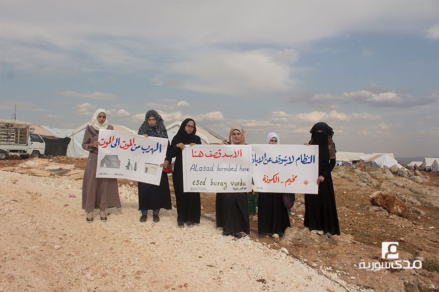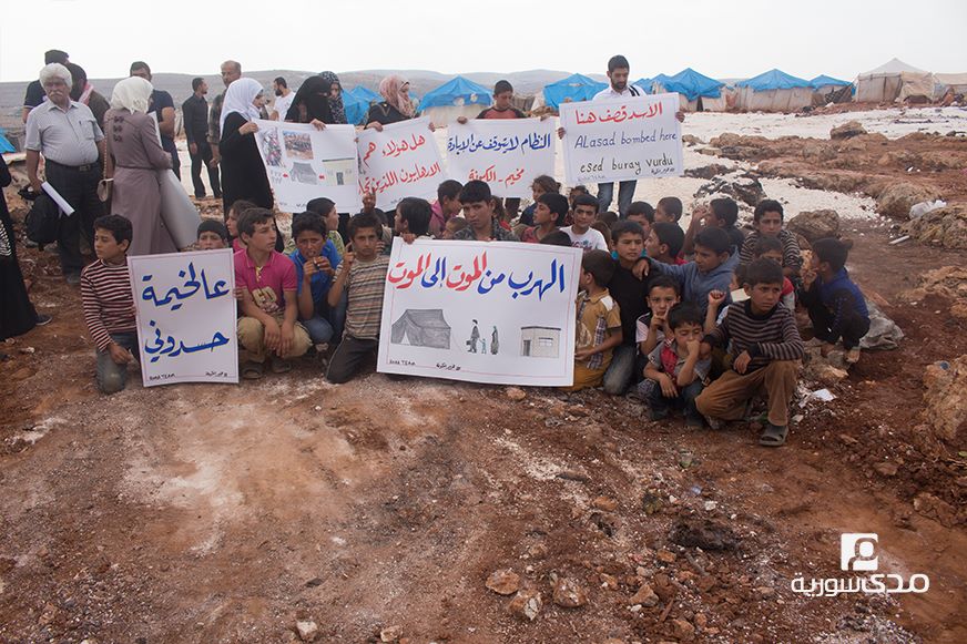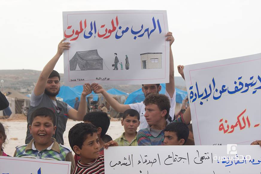 وشارك في الوقفة عشرات السكان من أهالي المخيم، بينهم أطفال ونساء وكبار سن، حيث طالبوا الأمم المتحدة بتأمين الحماية اللازمة لأماكن نزوحهم من آلة الإرهاب الأسدية.