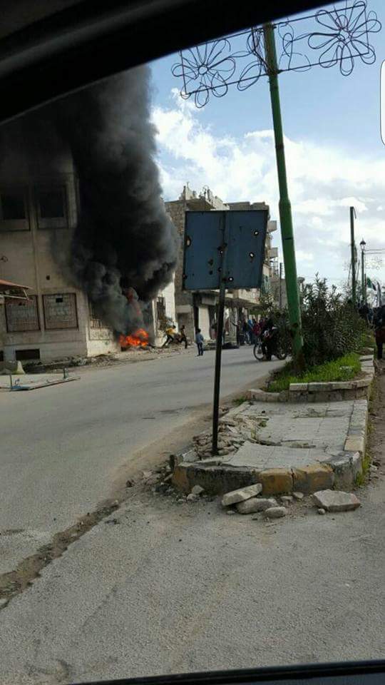 خرجت مظاهرة غاضبة في معرة النعمان اليوم حضرها نساء وأطفال المدينة، حملت أعلام الثورة وشعار الفرقة 13 التي هاجمتها النصرة منذ يومين، وطالبت المظاهرة جبهة النصرة بالخروج من المدينة ونددت بالاعتداء على الفرقة 13.