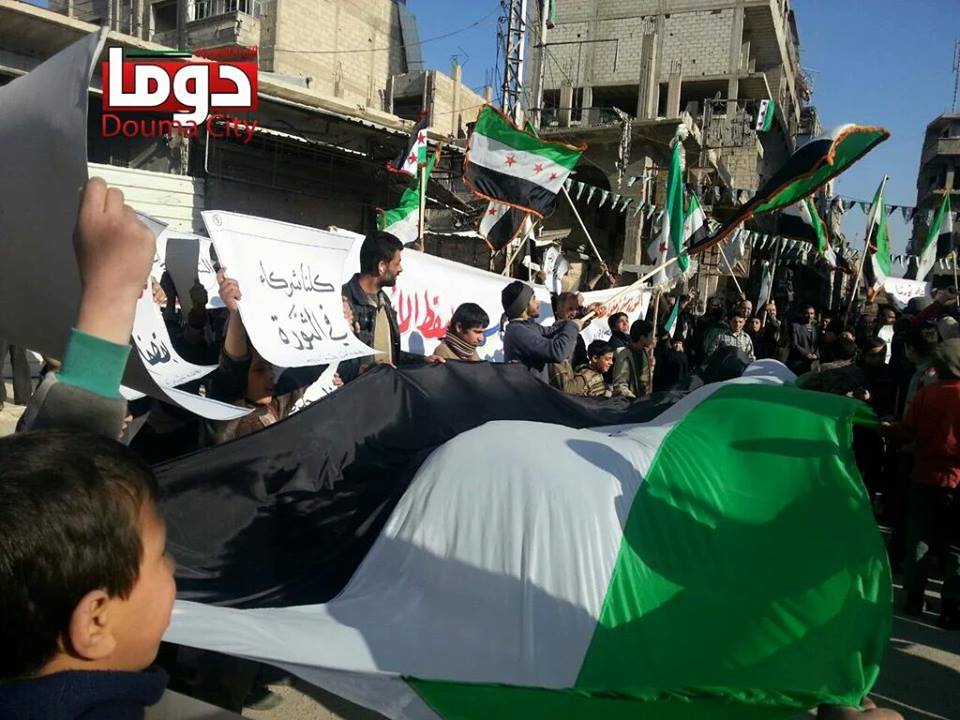 كما شملت التظاهرات مدن تلبيسة والحولة والرستن، أكبر مناطق حمص المحررة، في حين خرجت حشود عارمة في كل من مدن وأحياء دوما وسقبا وعربين والقابون بريف دمشق.